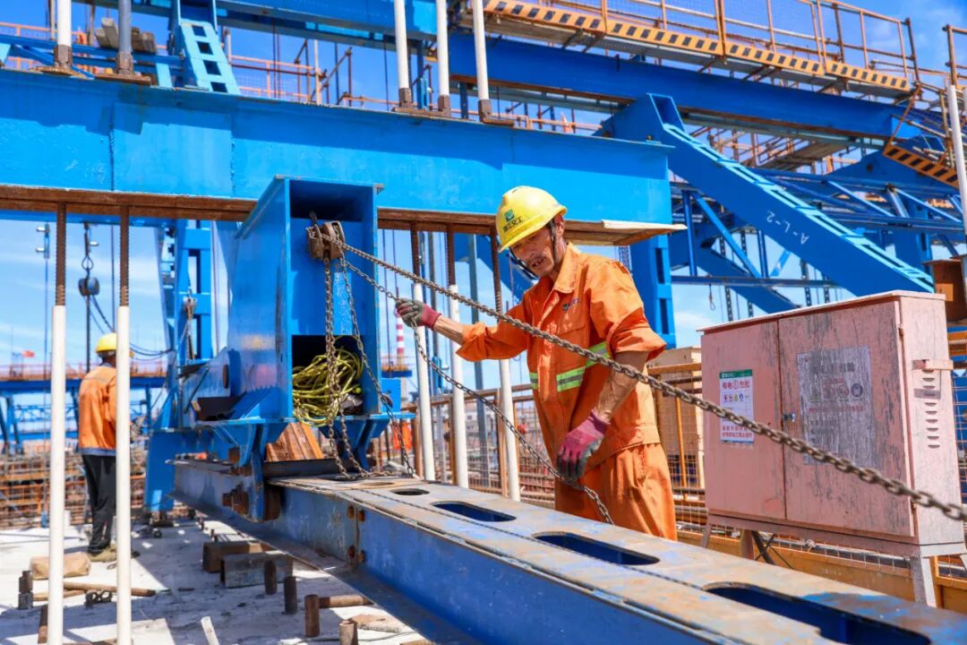 随着上午温度的不断攀升,热辣的阳光炙烤着工地,汗水从施工工人的额头和后背不断流下。“每天要流很多的汗,要喝5公斤多的水。”施工工人任松在短暂的休息间隙,边擦拭着脸上的汗珠边说道,“看着每个工期节点都顺利推进,心里感觉也挺骄傲的。”