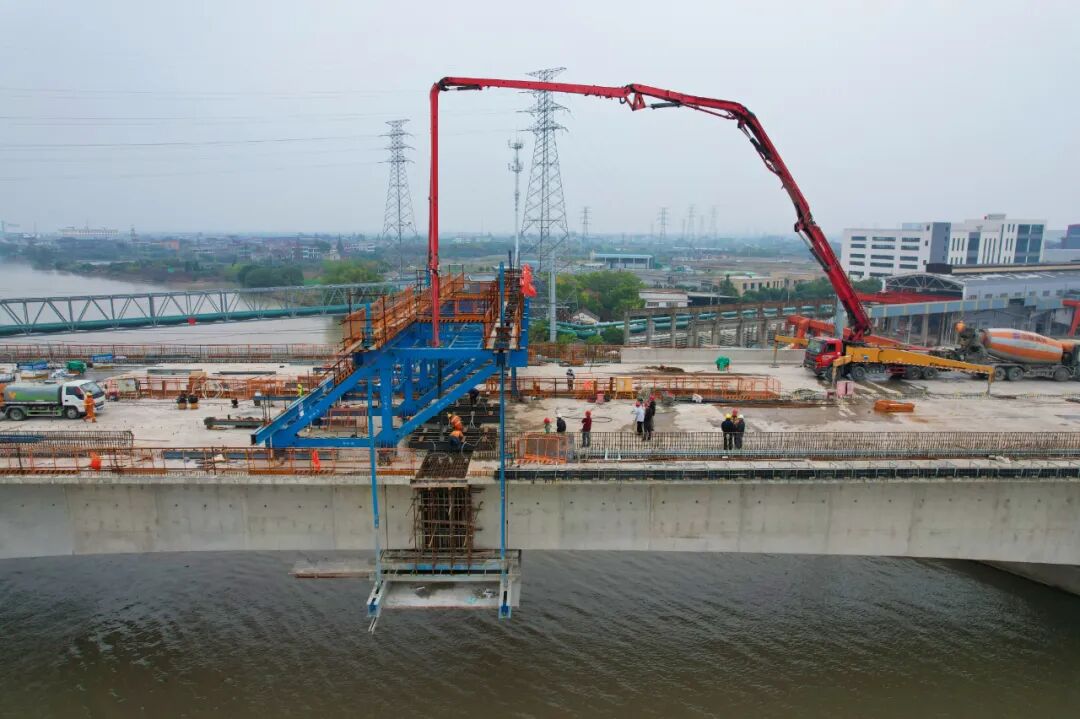 “连续梁施工具有浇筑方量大、安全管理难度高等特点,是白云桥项目的核心环节。”德清交运投资建设有限公司工程部副部长李勇介绍道。此次浇筑的中跨合龙段长2米,梁高4米,混凝土设计方量达到49立方米。建成后,桥梁通航净高达到7米,可顺利通过三层集装箱船队,这将大大改善航道通航条件,提高船舶运载能力。