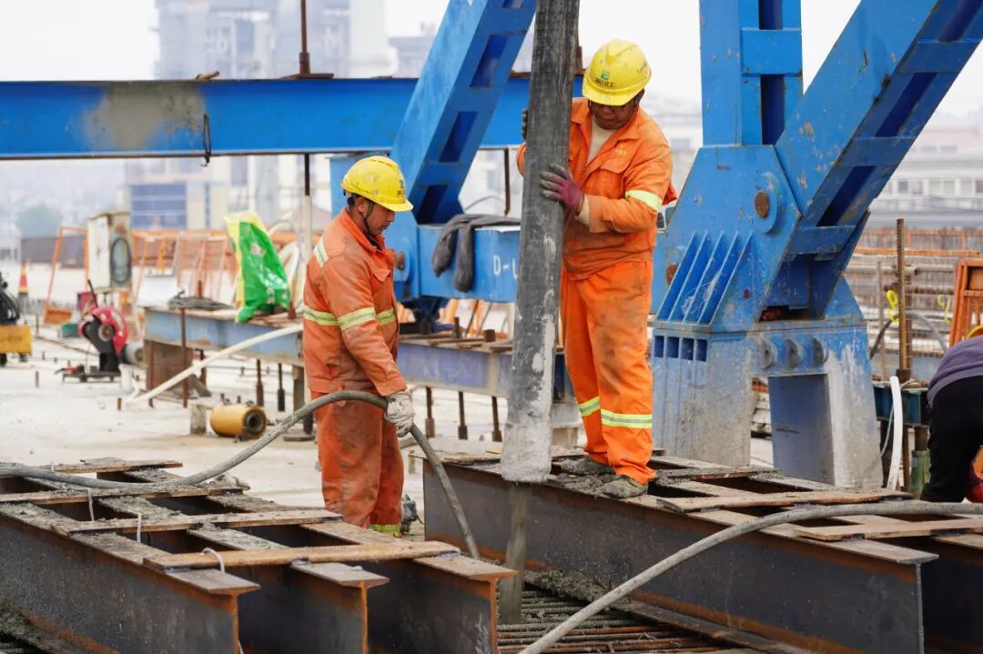 在施工现场,一辆混凝土搅拌车停靠在一旁,随着泵车的启动,混凝土从输送管中倾泻而出,迅速填满了钢筋骨架之间的空隙。工人们手持振捣器,熟练地对刚浇筑的混凝土进行振捣,以确保其达到最佳的密实度和均匀性。